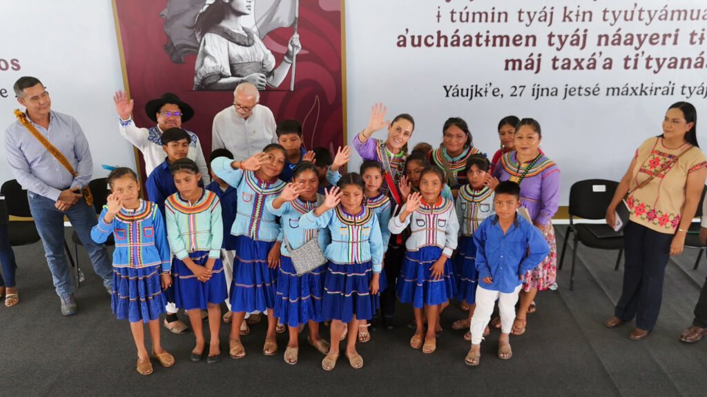 “Es hasta ahora con la Cuarta Transformación que se reconoce, de una vez por todas, el origen de México: los pueblos indígenas y los pueblos afromexicanos. Sin ese reconocimiento, México no puede salir adelante, porque es el origen, es la base, es la historia, es nuestra cultura, de todas y de todos, los que siguen siendo parte de los pueblos originarios y los que no”, afirma la presidenta Claudia Sheinbaum Pardo al entregar a los pueblos Na´ayeri, Wixárika, O´dam y Mexikan, de Nayarit, beneficios para 57 comunidades