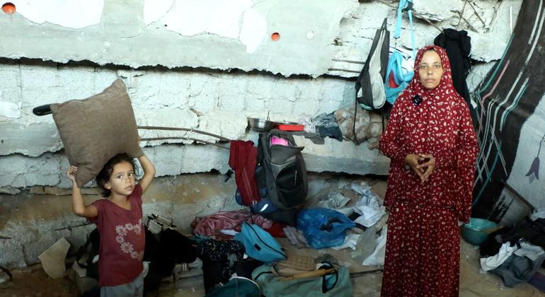 Khadija Manoun, cuenta que ella y su familia se han mudado más de 20 veces, desde Jabalia, en el norte de la Franja, hasta un edificio destruido en el oeste de Gaza, en busca de refugio.