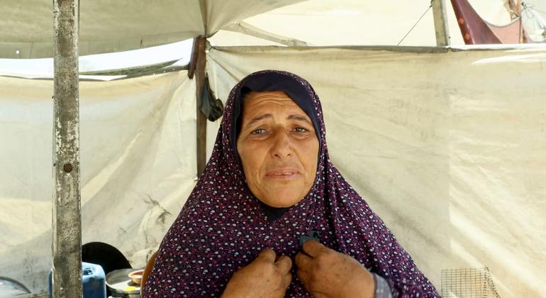 En su modesta tienda de campaña, ubicada en la playa al oeste de Gaza, la señora Badriya Al-Barawi, de Beit Lahia, se sienta intentando organizar lo que le queda de vida. Las lágrimas corren por sus mejillas mientras suplica: Tengan piedad de nosotros, ya estamos hartos y agotados, psicológica y físicamente. No podemos soportarlo más. ¿Hasta cuándo seguirá esta vida?