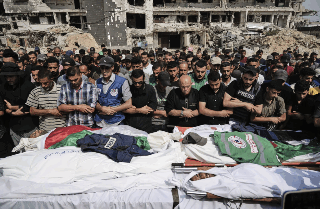 Se sabe que el bombardeo donde se refugiaban fuera del complejo hospitalario más grande de la Ciudad de Gaza también mató a otros cuatro periodistas y a dos personas más.