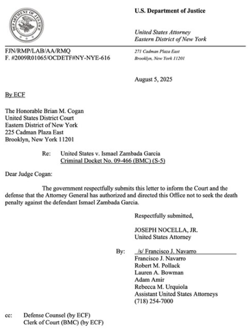 La culpabilidad por delitos relacionados con el narcotráfico que el próximo 25 de agosto aceptará Ismael El Mayo Zambada García ante el juez Brian Cogan, en la Corte Federal del Distrito Este en Brooklyn, Nueva York, Estados Unidos, es una confesión anunciada el pasado 5 de agosto por la fiscalía federal de la Unión Americana, cuando por órdenes de la secretaria de Justicia, Pam Bondi, se informó que el gobierno estadounidense no buscaría la pena de muerte para el cofundador del Cártel de Sinaloa, ni contra los capos dela droga, Rafael Caro Quintero y Vicente Carrillo Fuentes, El Viceroy, presumiblemente tras haber llegado a un acuerdo con las autoridades.